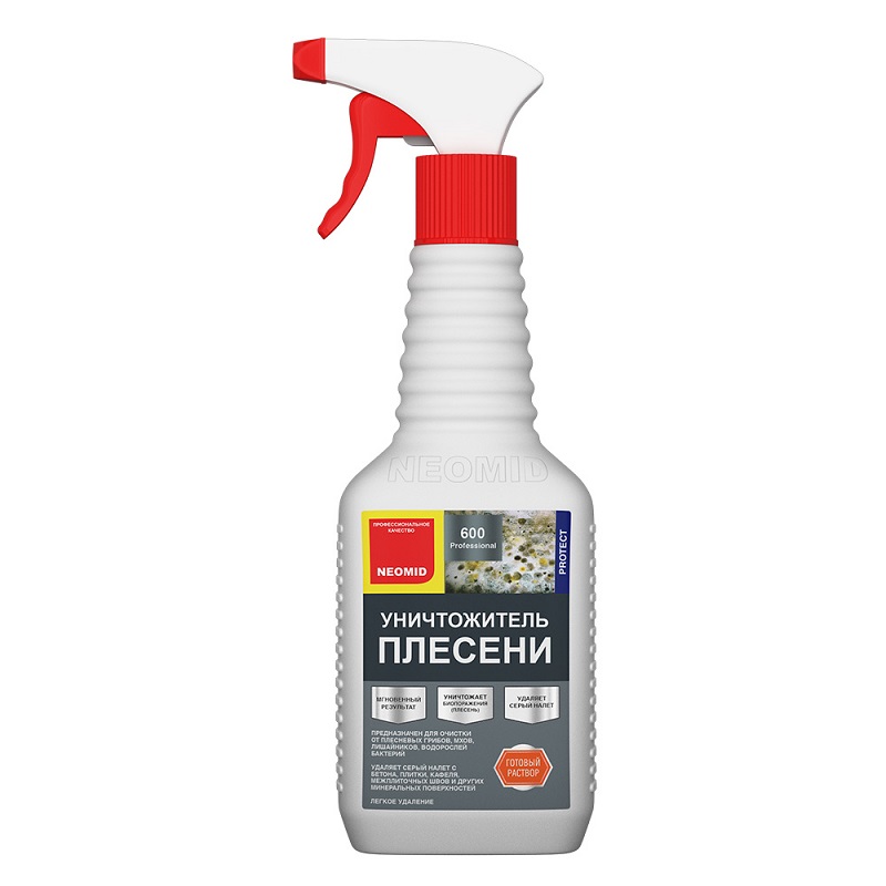 НАЗНАЧЕНИЕ: NEOMID 600 мгновенно удаляет серый налет, эффективно и быстро уничтожает грибы, мхи, лишайники, водоросли, бактерии с бетона, кирпича, камня и других минеральных поверхностей.