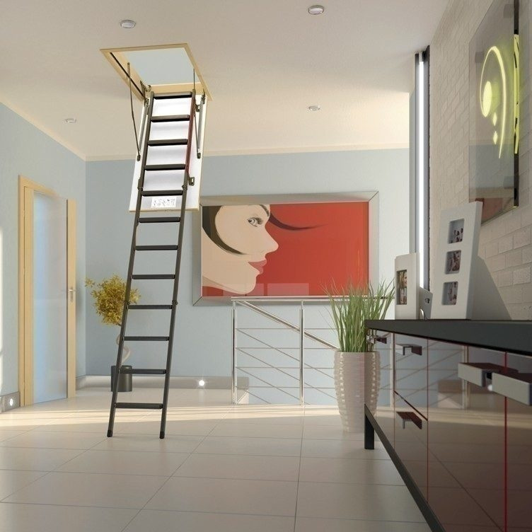 Чердачная лестница для проема 70х120 см и высоты помещения до 280 см LMK представляет собой складную конструкцию из металлического лестничного марша и термоизоляционной крышки люка белого цвета, выполненной из ДВП. Утепленная крышка люка и контур уплотнения, установленный по ее периметру, обеспечивают высокую степень герметичности и предотвращают теплопотери. Лестница легко складывается и убирается в потолок с помощью стержня, а встроенный в крышку люка замок позволяет закрыть люк и обеспечить защиту от несанкционированного проникновения на чердак. Для большей безопасности ступени лестницы снабжены противоскользящими выемками. Для правильного и быстрого монтажа рекомендуем использовать монтажный комплект LXK. Максимальная нагрузка на лестницу 200 кг.