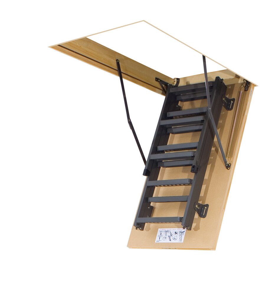 Чердачная лестница для проема 60х120 см и высоты помещения до 280 см LMS представляет собой складную конструкцию из металлического лестничного марша и термоизоляционной крышки люка бежевого цвета, выполненной из ДВП. Утепленная крышка люка и контур уплотнения, установленный по ее периметру, обеспечивают высокую степень герметичности и предотвращают теплопотери. Лестница легко складывается и убирается в потолок с помощью специального стержня, а встроенный в крышку люка замок позволяет закрыть люк и обеспечить защиту от несанкционированного проникновения на чердак. Для большей безопасности ступени лестницы снабжены противоскользящими выемками. Для правильного и быстрого монтажа рекомендуем использовать монтажный комплект LXK. Максимальная нагрузка на лестницу 200 кг.