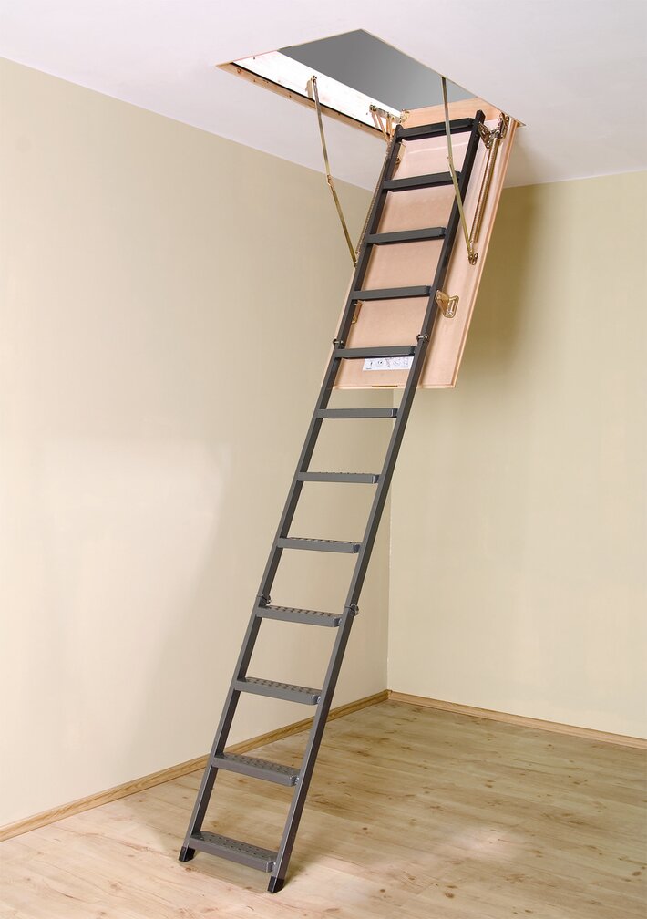 Чердачная лестница для проема 60х130 см и высоты помещения до 305 см LMS представляет собой складную конструкцию из металлического лестничного марша и термоизоляционной крышки люка бежевого цвета, выполненной из ДВП. Утепленная крышка люка и контур уплотнения, установленный по ее периметру, обеспечивают высокую степень герметичности и предотвращают теплопотери. Лестница легко складывается и убирается в потолок с помощью специального стержня, а встроенный в крышку люка замок позволяет закрыть люк и обеспечить защиту от несанкционированного проникновения на чердак. Для большей безопасности ступени лестницы снабжены противоскользящими выемками. Для правильного и быстрого монтажа рекомендуем использовать монтажный комплект LXK. Максимальная нагрузка на лестницу 200 кг.