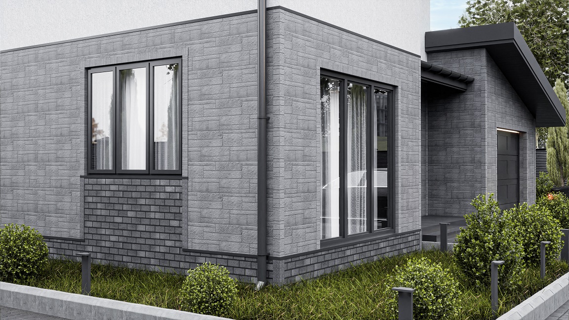 - Увеличенная толщина 3,3 мм и вес 13 кг/кв.м позволяют выдерживать повышенную нагрузку на цокольную часть фасада;