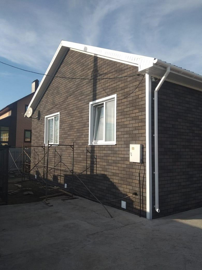 Фасадная плитка Docke Premium Brick имитирует ложковую кирпичную кладку и предназначена для декоративной отделки фасадов и цоколя здания. Плитка изготавливается из SBS - модифицированного битума, что помимо повышенно стойкости к атмосферным воздействиям и увеличенному сроку службы дает возможность использовать плитку для оформления углов здания. Другим вариантом оформления углов могут быть металлические фартуки, которые можно подобрать в цвет фасадной плитки либо выделить углы контрастным цветом.
