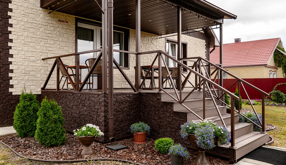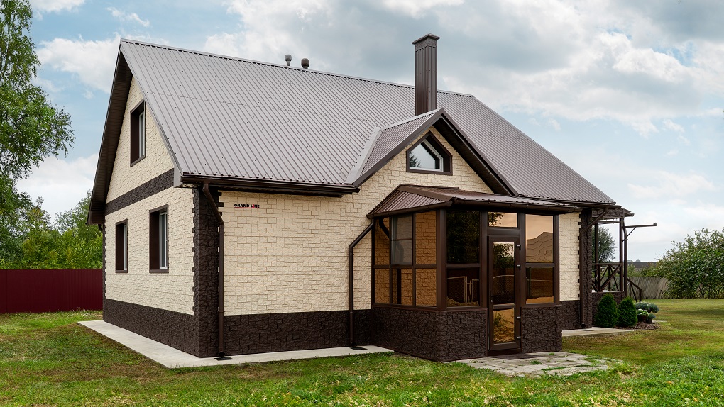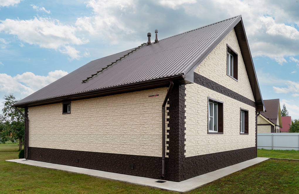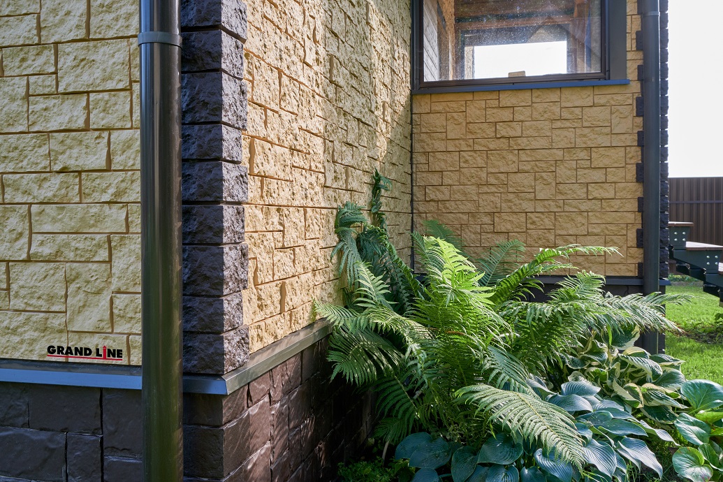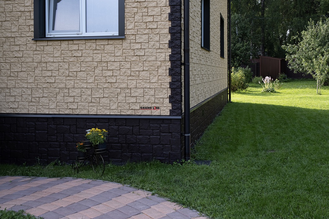 Вы можете дополнить фасад и цоколь углами в тон фасадной панели или выбрать углы контрастного цвета.