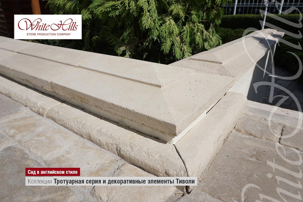Накрывные плиты продолжают серию «Тиволи», имитирующую природный материал травертин — вслед за облицовочным камнем, тротуарной плиткой, декоративными элементами и рустами. Новое изделие предназначено для облицовки заборов, столбов и других оградительных сооружений около дома.