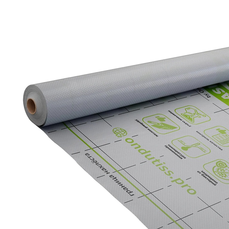 ONDUTISS BASIC D – двухслойная гидро-пароизоляционная плёнка из серого полипропилена, ламинированного защитной плёнкой.