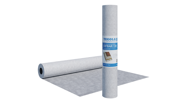 Дифбар 130 Плюс - трехслойная диффузионная мембрана с ультразвуковой сваркой слоев и интегрированной самоклеящейся полосой вдоль рулона. Диффузионные мембраны монтируются непосредственно на теплоизоляционный слой цветной (серой / черной) стороной вверх, параллельно карнизу внахлест (100мм) и фиксируются при помощи строительного степлера. Места соединений мембран герметизируются при помощи интегрированной самоклеящейся полосы.