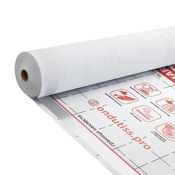 Ondutiss Smart A - ветрозащитная пленка для фасада с интегрированной монтажной лентой плотностью ок. 80 г/кв.м.. Размер рулона 1,5*46,67 м, 70 кв.м.
