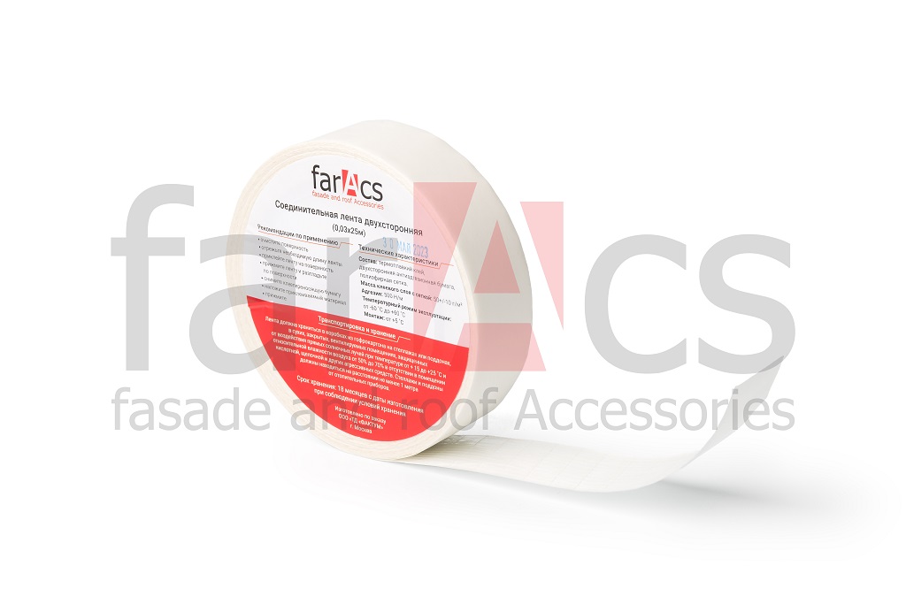 Соединительная двухсторонняя лента farAcs предназначена для герметичного и прочного скрепления пароизоляционных и диффузионных мембран и пленок между собой. С помощью ленты farAcs монтажные работы становятся более простыми и удобными. Отличительным преимуществом ленты  является основа из полиэфирной сетки, что обеспечивает прочность ленты и равномерное распределение клеевой массы по всей длине изделия. Формула клеевой массы разработана с учетом возможности использования в разных климатических зонах – температурный диапазон эксплуатации от - 60 до  +60 градусов Цельсия.