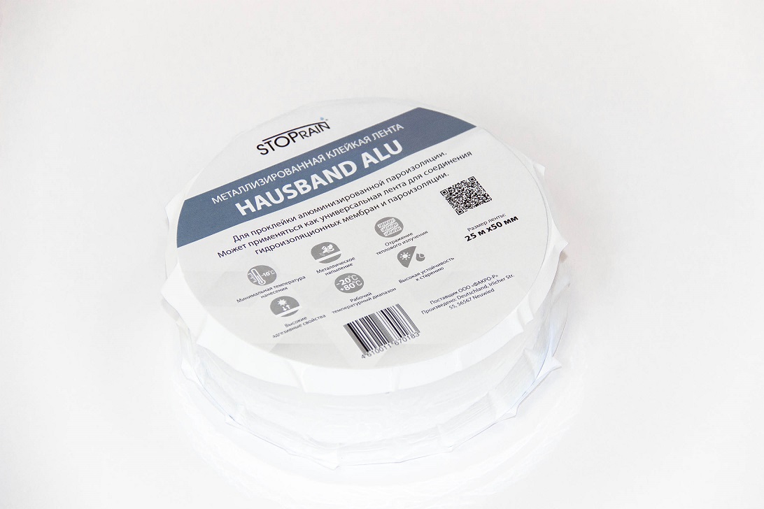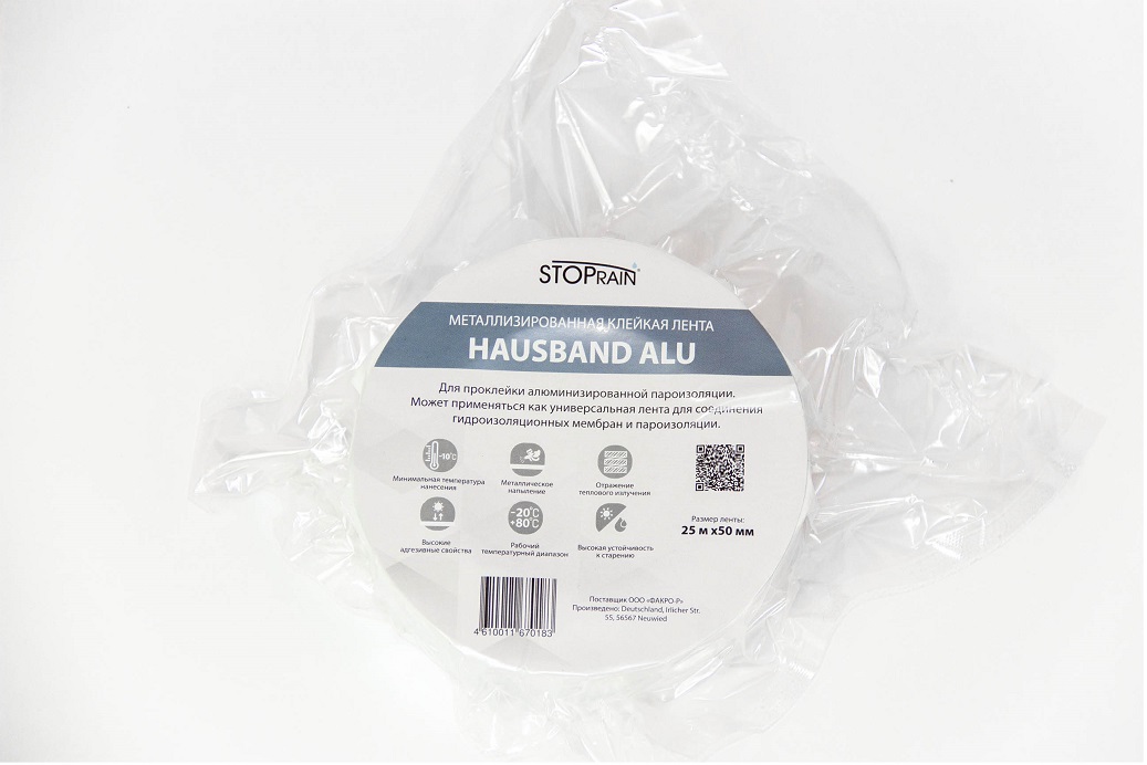 HAUSBAND ALU - Алюминизированная лента для соединения полотен фольгированных пароизоляционных пленок между собой и их примыкания к конструкциям кровли и фасада