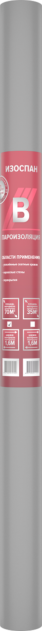 Изоспан В применяется в качестве паробарьера для защиты утеплителя и других элементов строительной конструкции от насыщения парами воды изнутри помещения в зданиях всех типов. Материал укладывается с внутренней стороны утеплителя в конструкциях стен и утеплённой кровли, а также в перекрытиях. Материал имеет двухслойную структуру: одна сторона гладкая, другая - с шероховатой поверхностью для удерживания капель конденсата и последующего их испарения. Пароизоляция Изоспан В позволяет сохранять теплоизолирующие свойства утеплителя и продлевает срок службы всей конструкции, защищает внутреннее пространство здания от проникновения частиц волокнистого утеплителя.