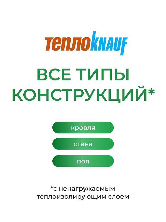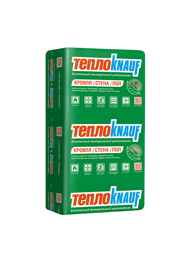 Утеплитель защищен от воздействия влаги специальной гидрофобизирующей технологией Aquastatik. В случае намокания он высохнет и сохранит все свои первоначальные свойства. Также, благодаря этой пропитке, ТеплоКНАУФ может применяться для утепления ограждающих конструкций на основе металлического каркаса.