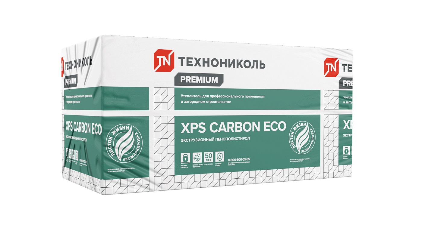 XPS CARBON ECO – идеальное решение для утепления коттеджа от фундамента до кровли. Высокая прочность и низкий показатель теплопроводности обусловили популярность этого материала у профессиональных строителей. XPS не впитывает воду, не набухает и не дает усадки, химически стоек и не подвержен гниению. Срок службы материала не менее 50 лет. XPS ТЕХНОНИКОЛЬ CARBON ECO имеет добровольную сертификацию «Листок Жизни», что подтверждает безопасность применения в жилищном строительстве. Это отличный теплоизоляционный материал для тех, кто ищет качественную теплоизоляцию с высокими характеристиками.