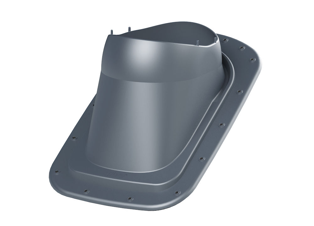 Проходной элемент для фальцевой и готовой скатной битумной кровли. В комплект входит двухкомпонентный 2K -уплотнитель гидрозатвора, гарантирующий полную герметичность прохода через гидрозащитную пленку.