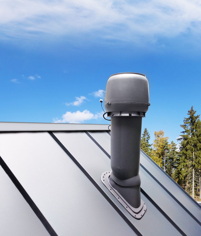 Проходной элемент для фальцевой и готовой скатной битумной кровли. В комплект входит двухкомпонентный 2K -уплотнитель гидрозатвора, гарантирующий полную герметичность прохода через гидрозащитную пленку.