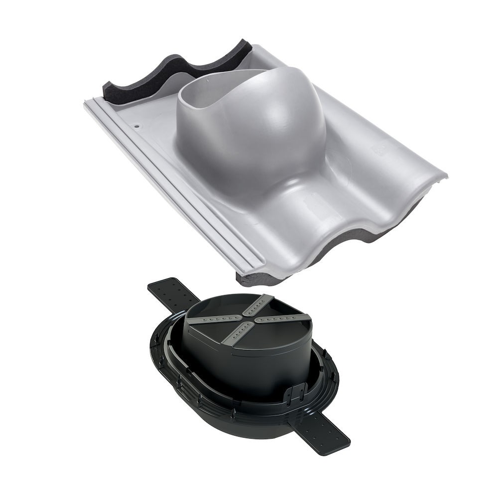 TIILI проходной элемент для монтажа на кровле из цементно-песчаной черепицы труб и вентиляторов диаметром 110 –160 мм и антенного ворота. Заменяет одну двухволновую черепицу шириной 330 мм и высотой волны 27-40 мм.