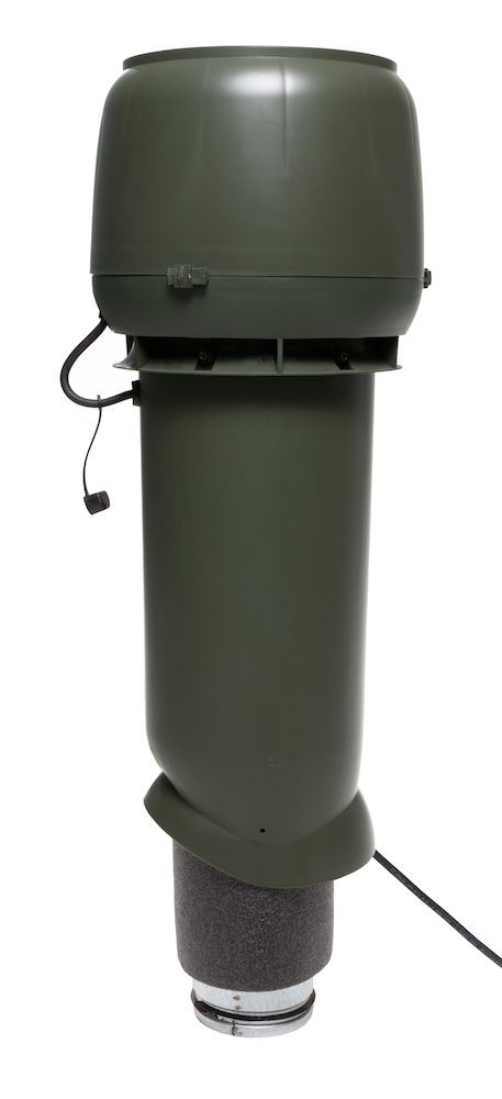 E190Р/125/700 вентилятор представляет собой трубу с колпаком, в который встроен вентилятор. Труба теплоизолирована для предотвращения образования конденсата в трубе. Внутренняя труба изготовлена из оцинкованной стали и имеет теплоизоляцию толщиной 50 мм. Длина внутренней трубы позволяет вставить ее в подводимый воздуховод на длину 300 мм. Это облегчает вертикальный монтаж в тесных чердачных помещениях и одновременно делает конструкцию более прочной. Нижний край внутренней трубы имеет резиновый уплотнитель, герметизирующий соединение трубы и воздуховода.