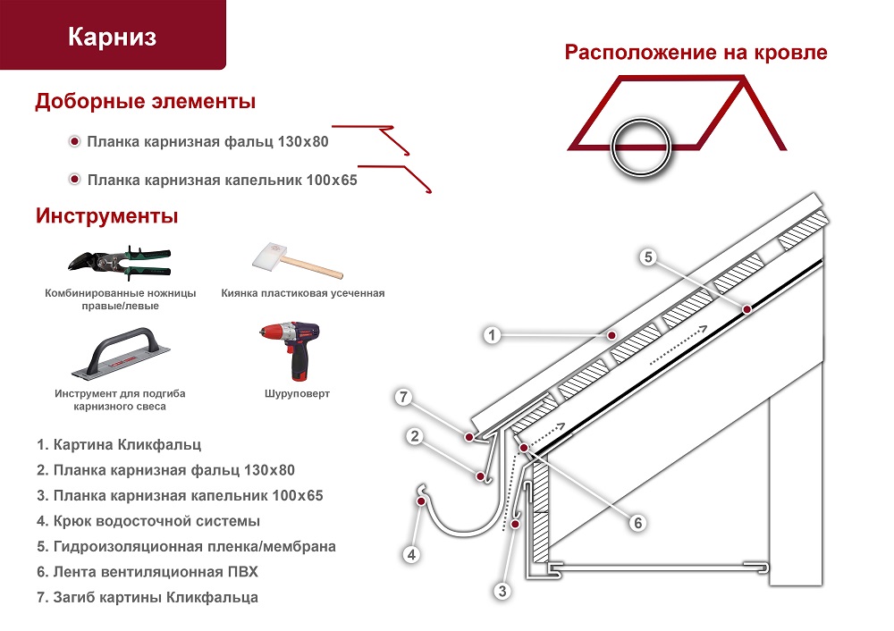 Карнизная планка фальцевой кровли, устанавливается на карнизе, изломе кровли. Служит для крепления в нижней части фальцевых картин. Матовое полимерное покрытие Drap, длина планки 2 м.
