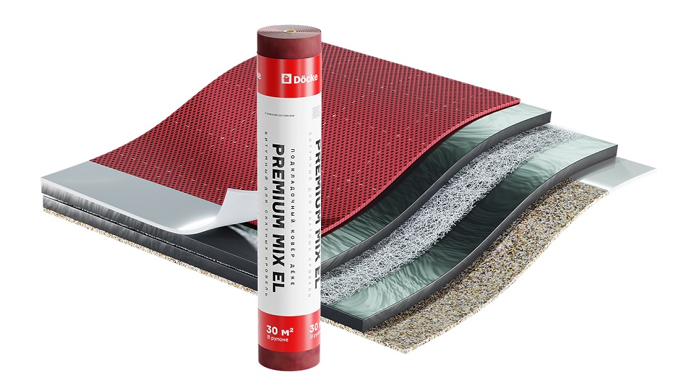 Подкладочный ковер Docke Premium Mix EL 30 м предназначен для устройства сплошного гидроизоляционного слоя под гибкую черепицу на скатных кровлях с уклоном от 12°. Материал сочетает надёжную основу и современные технологии производства, обеспечивая защиту основания от влаги, ветра и механических нагрузок.