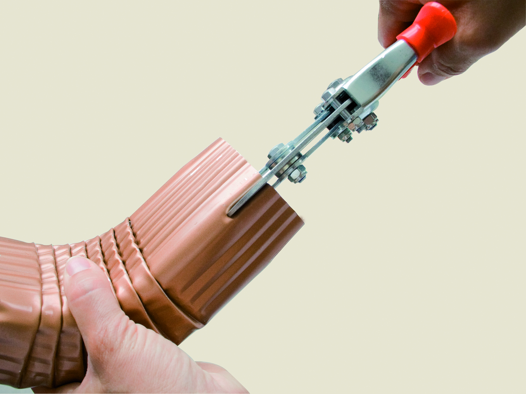 Инструмент для обжатия труб водосточной системы для их последующей стыковки между собой.