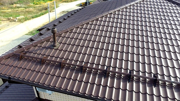 Металлочерепица, изготовленная из стального листа, толщиной 0,5мм, пожалуй, самая надежная на сегодняшний день. Она выдерживает большие снеговые нагрузки. Для данной толщины металла производители предлагают самый широкий ассортимент покрытий - от классического покрытия Полиэстер, до инновационных материалов с Полиуретановым верхним слоем. Цветовые решения помогут воплотить самые изысканные дизайнерские решения для Вашего дома.