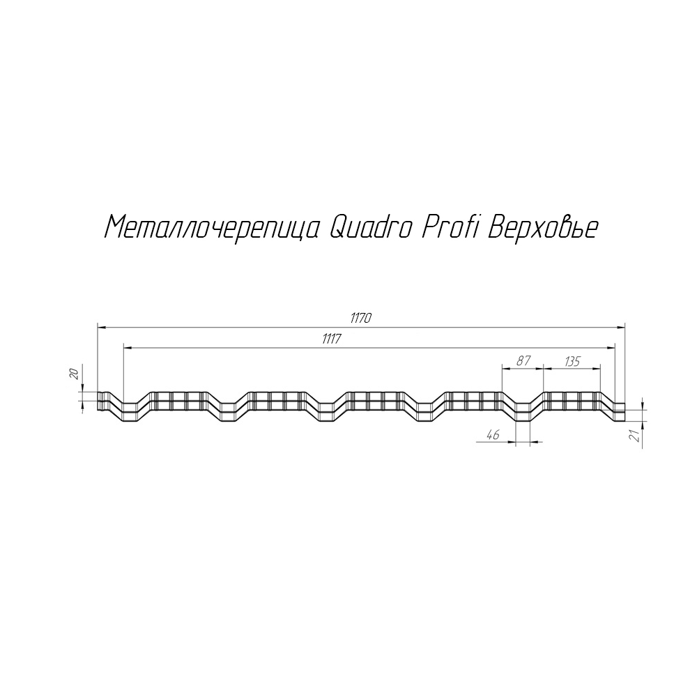 Quadro Profi - это новый уровень прочности и надежности кровли благодаря высокому профилю и интересному рисунку. Оригинальный внешний вид, напоминающий броню, позволит металлочерепице Quadro Profi сделать Ваш дом уникальным, непохожим на объекты с кровлей в классическом стиле с мягкими линиями волн, выгодно подчеркнет архитектурные особенности строения благодаря строгой геометрии рисунка. Листы профиля Quadro имеют стандартную габаритную ширину 1,159 м., полезная ширина 1,08 м, длина, за исключением запретных длин, производится любая в диапазоне от 0,5 до 8 м.