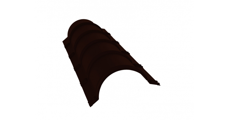 Планка конька полукруглого защищает от атмосферных осадков коньки кровли, носит декоративную функцию. В торцы полукруглого конька необходимо устанавливать торцевые или конусные заглушки, длина планки 1,97м. Рекомендуется установка рулонного аэроэлемента под коньковую планку. Глянцевое полимерное покрытие Полиэстер.