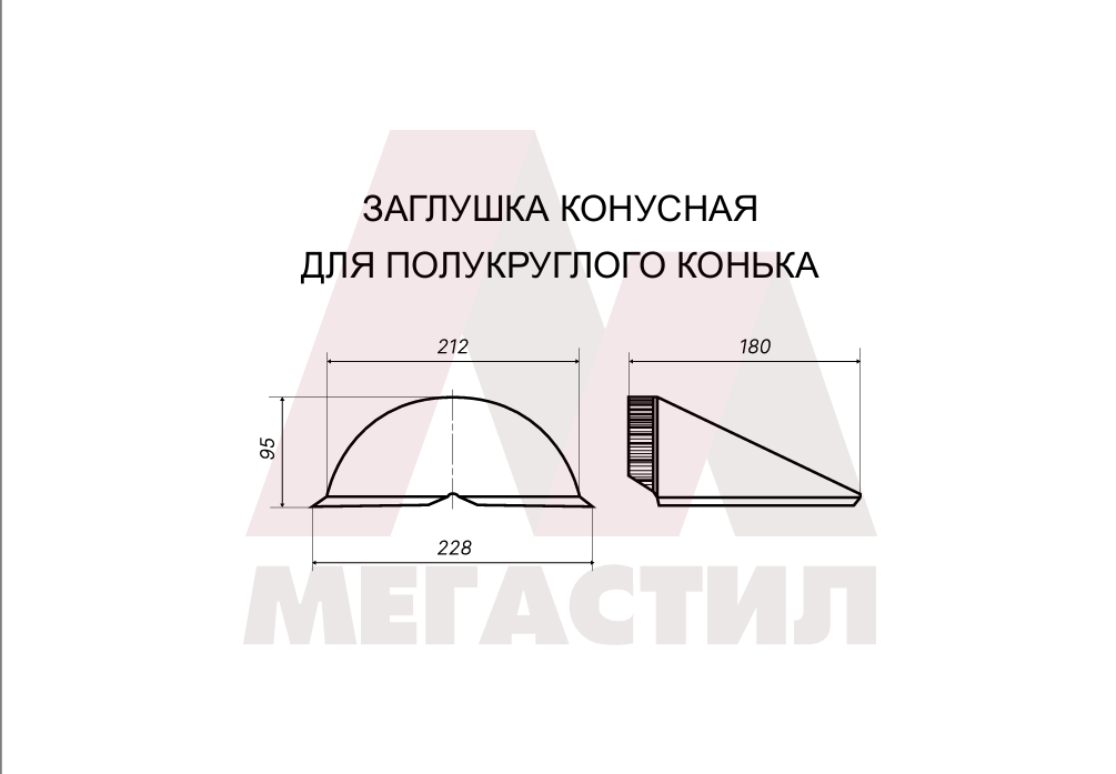 Конусная заглушка полукруглого конька - важный элемент кровельной системы, предназначенный для защиты торцевых частей конька металлочерепицы. Изготовлена из оцинкованной стали с глянцевым полимерным покрытием.