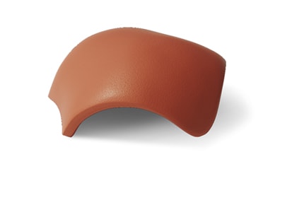 Вальмовая черепица применяется для обустройства стыка двух наклонных коньков (хребтов) и горизонтального конька крыши. Специализированные зажимы для крепления в комплекте.