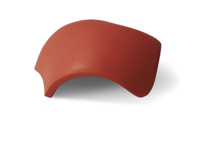 Вальмовая черепица применяется для обустройства стыка двух наклонных коньков (хребтов) и горизонтального конька крыши. Специализированные зажимы для крепления в комплекте.