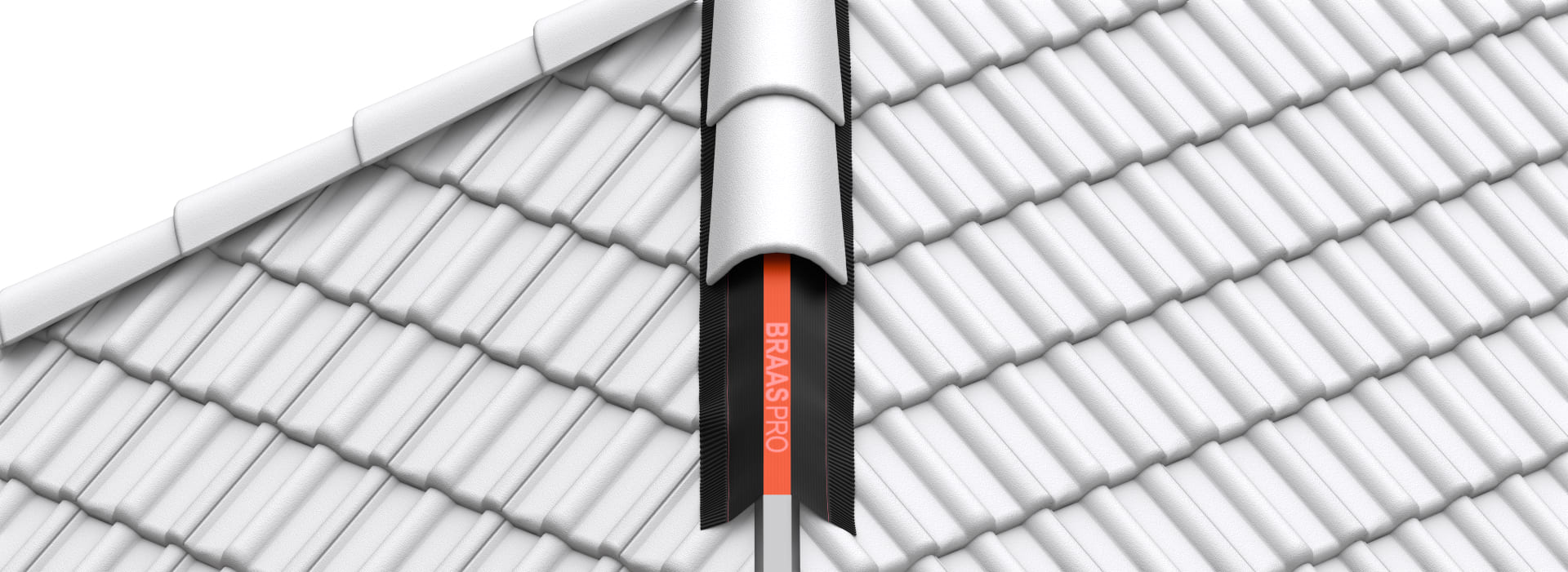 Устанавливается на коньках и хребтах кровли из натуральной черепицы, предотвращает задувание атмосферных осадков в подкровельное пространство, не препятствует естественно вентиляции кровли.