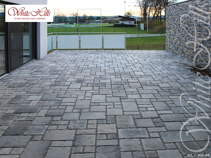 Тротуарная плитка Тиволи толщиной 30 мм. Поставляется в виде микса из трех размеров: 300*300 мм, 150*300 мм, 150*150 мм.