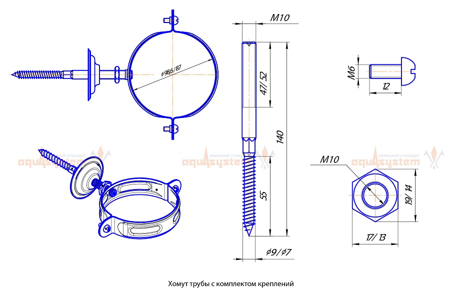 <Хомут трубы диаметром 100 мм Aquasystem с комплектом крепления трубы предназначен для надежного крепления водосточного стояка на фасаде здания. Усиленный, с ребрами жесткости, что обеспечивает надежное крепление водосточной трубы. Имеет винтовое соединение, позволяющее использовать его многократно и упрощает установку. Подходит к любым типам фасадов/ В комплект входит декоративная накладка, которая обеспечивает эстетику в месте крепления хомута, скрывает сколы отверстия и дюбель, а при использовании герметика защищает фасад от разрушения.