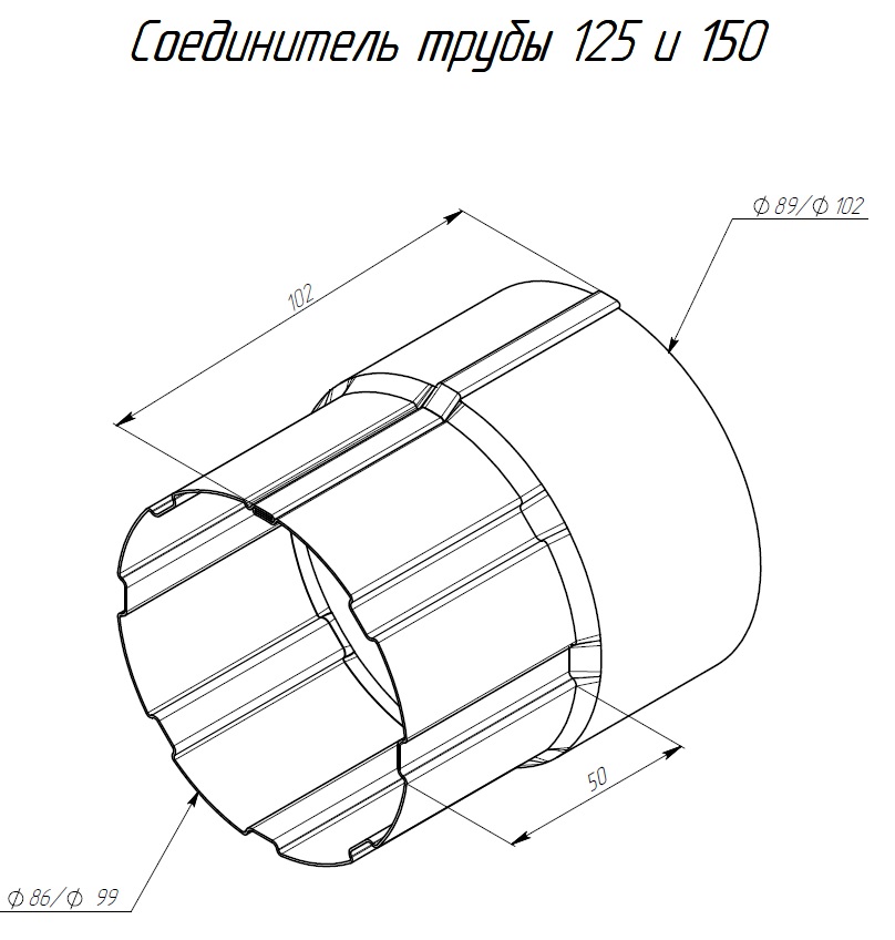 Соединитель трубы диаметром 100 мм используется для соединения труб между собой, когда у трубы не обжаты края.