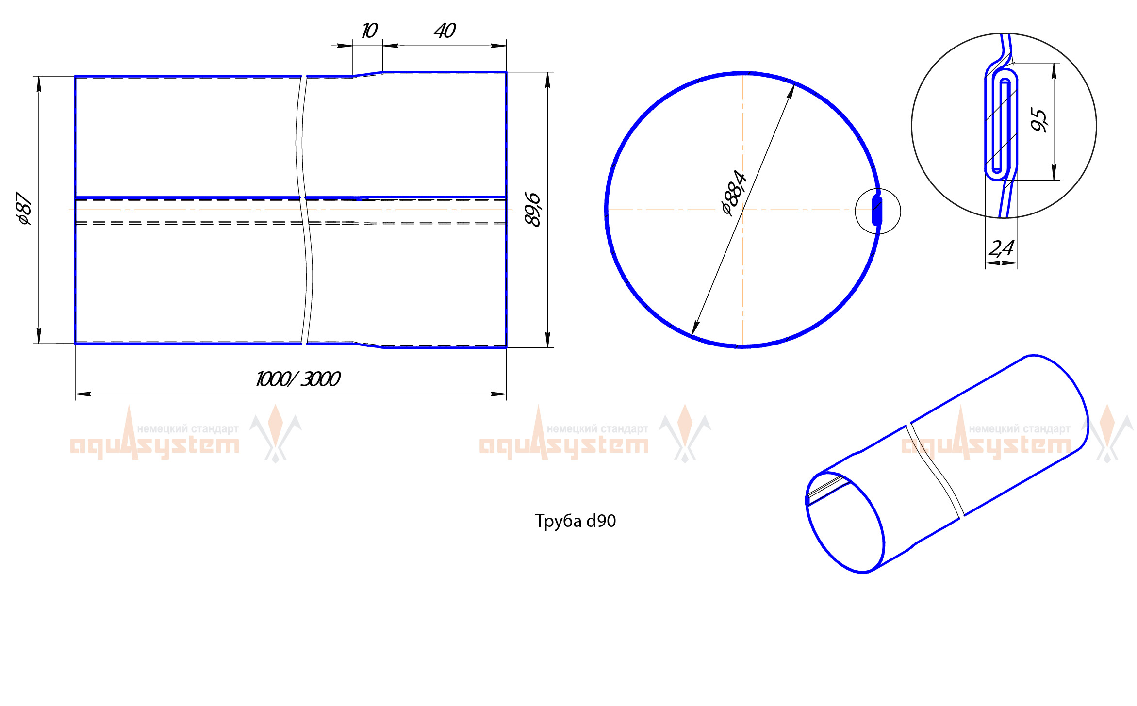 Водосточная труба длиной 1 м Aquasystem диаметром 90 мм предназначена для отвода воды вдоль фасада здания. Надежный внутренний замок на водосточной трубе в состоянии хорошо противостоять давлению изнутри и как следствие предохраняет трубу от разрыва. Для стыковки труб между собой используется внешний раструб в верхней части трубы, а не сужение в нижней части, что обеспечивает одинаковую пропускную способность по всей длине водосточного стояка.