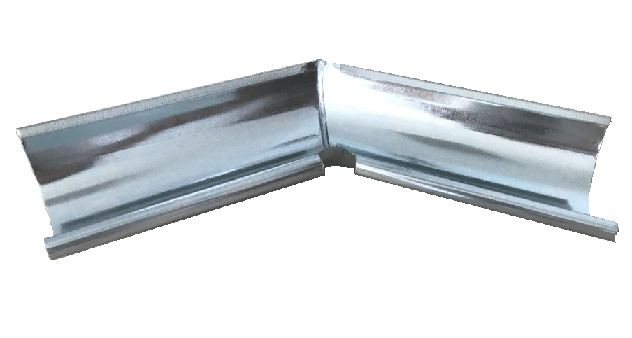Угол желоба внутренний 135" ф125мм. Обеспечивает непрерывность линии желоба на внутренних углах здания. Изготовлен из оцинкованной стали (Zn I класс).