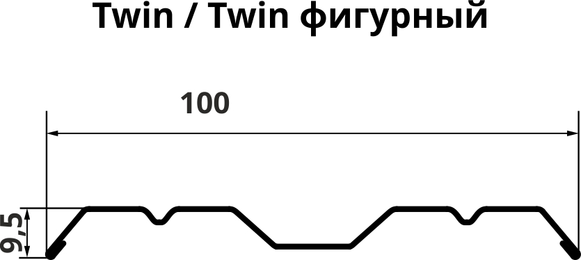 Штакетник Twin фигурный (с полукруглым декоративным резом в верхней части) производится под заказ в диапазоне длин от 0,5 до 3 м с шагом 1 см, на заказы суммарной длиной менее 72 м.п. может взиматься наценка. Ширина штакетника 100 мм.